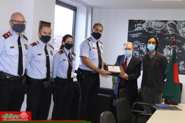 বাংলাদেশ কনস্যুলেট ও স্পেনবাংলা প্রেসক্লাব পক্ষ থেকে বার্সেলোনা পুলিশ প্রশাসনকে সম্মাননা স্মারক প্রদান