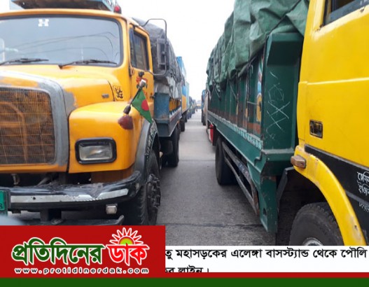 দূর থেকে দেখলে মনে হতে পারে মহাসড়কে দীর্ঘ ট্রাকের জ্যাম লেগে আছে। ঢাকা-টাঙ্গাইল ও বঙ্গবন্ধু সেতু মহাসড়কের কালিহাতী উপজেলার এলেঙ্গা বাসস্ট্যান্ড থেকে পৌলি উৎসব পেট্রোল পাম্প পর্যন্ত প্রায় দুই কিলোমিটার দীর্ঘ এই ট্রাকের লাইন। কিন্তু কাছে গেলে দেখা যায় ফোর লেনের মহাসড়কের পাশ দিয়ে নির্মিত সিএনজি-অটোরিক্সাসহ হালকা যানবাহন চলাচলের জন্য নির্মিত রাস্তাটি দখল করে আছে বিভিন্ন ধরনের ট্রাক। কোন কোন ট্রাক আবার এলোপাতাড়ি দাঁড় করিয়ে রাখা হয়েছে পাশর্^ রাস্তার ওপর। এতে সবচেয়ে বেশি সমস্যায় মধ্যে পড়ছেন সিএনজি এবং অটো রিক্সা।
