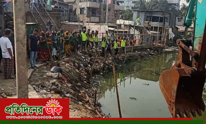 খালে অবৈধ স্থাপনা উচ্ছেদ অভিযান শুরু করেছে ডিএনসিসি